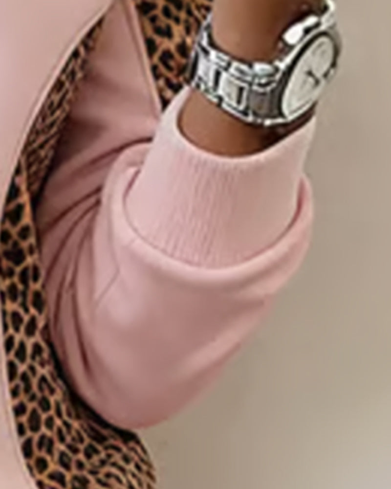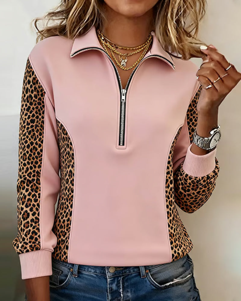 Icon1 Lössittande Sweatshirt Med Halvblås Och Leopardtryck