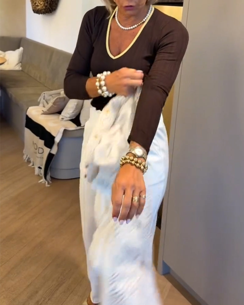 💖 Enfärgad Stickad Topp Med V-Ringning