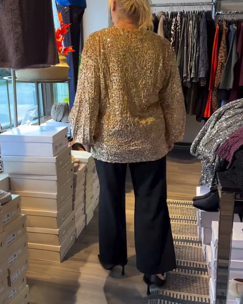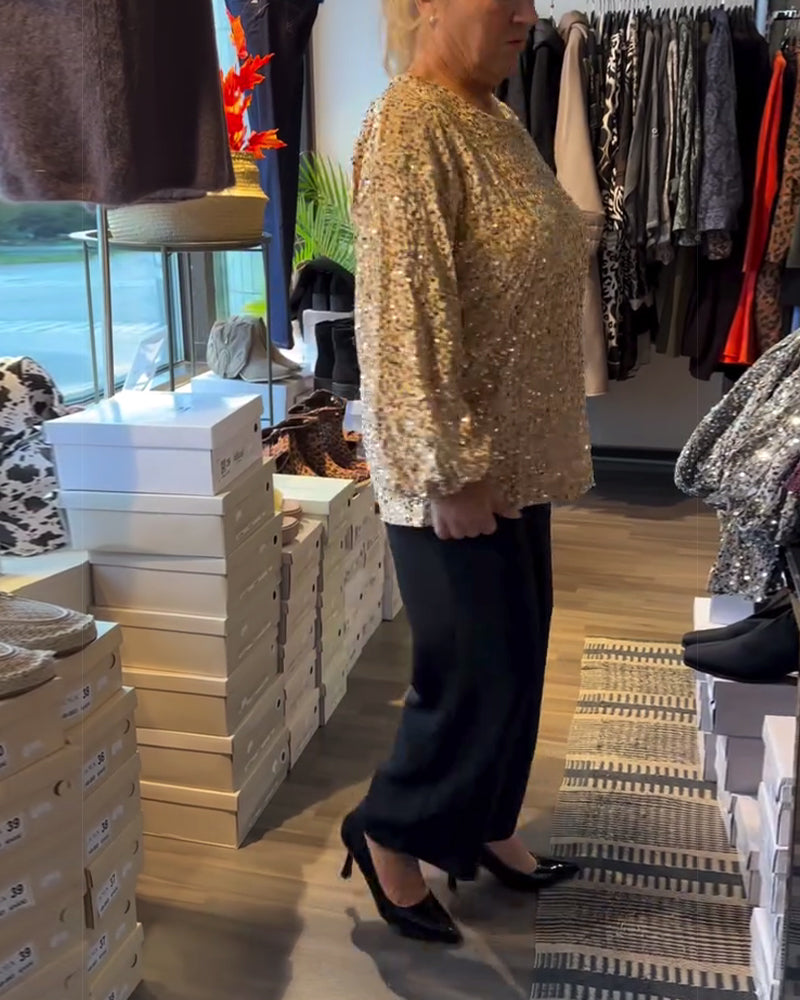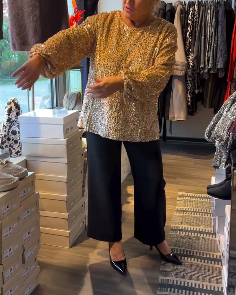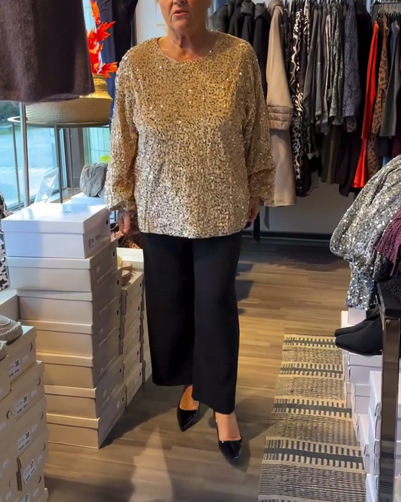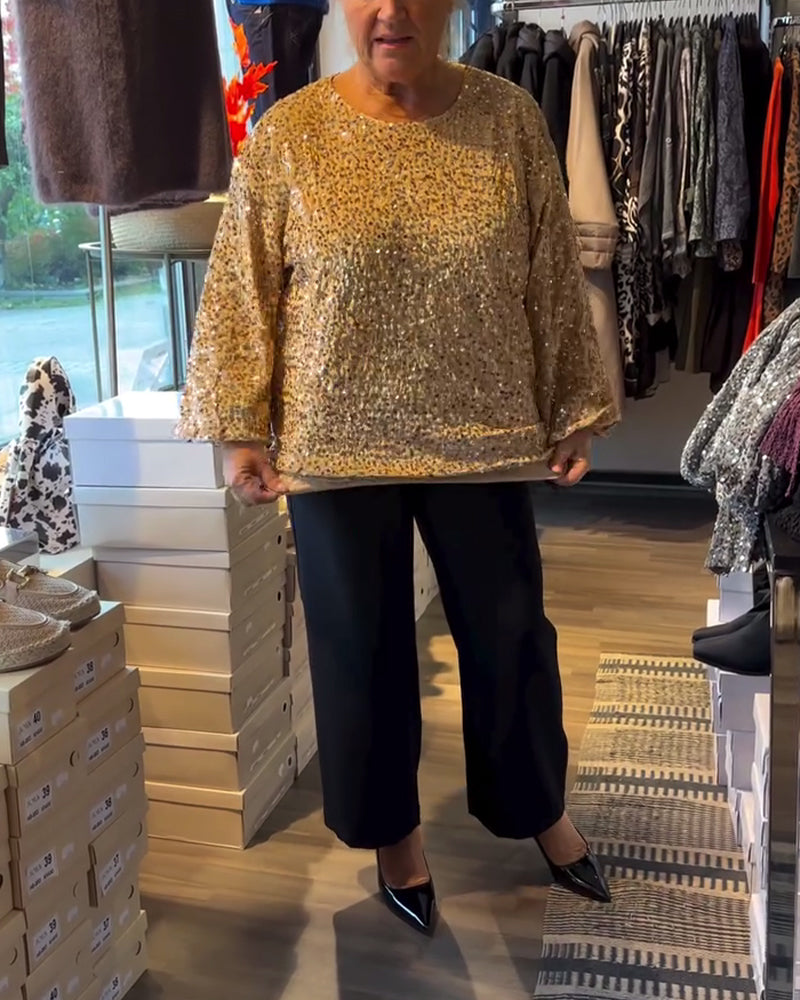 Avslappnad plisserad topp med paljetter i enfärgad patchwork