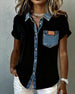 Komfortabel enfärgad lapelblus med kort ärm och ficka