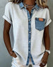 T-Shirt Denim Patchwork Nedfällbar Krage