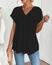 Kortärmad Enfärgad blus med v-ringning
