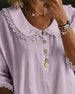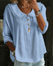 SPECIFIKATIONER Topptyp: Blusar Stil: Enkel Material: Bomullsblandningar Tillfälle: Dagligen Urringning: Peter Pan krage Mönstertyp: Enfärgade Typ av ärm: Vanlig ärm Ärmlängd: 3/4 ärm Passform typ: Vanlig Säsong: Vår,Höst Detaljer: Lappverk,Knappar Paketet innehåller: 1 x Blus STORLEKSTABELL(cm) Storlek Byst Längd S 97 65 M 101 66.5 L ...