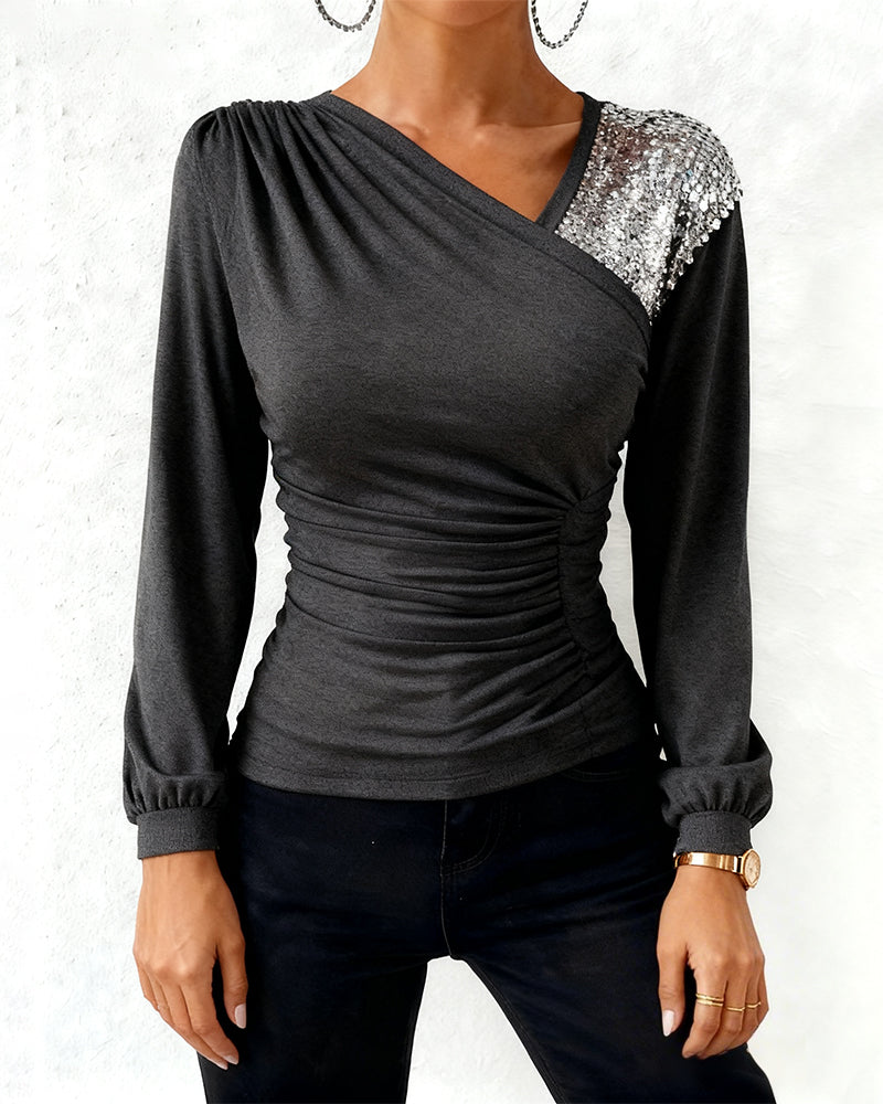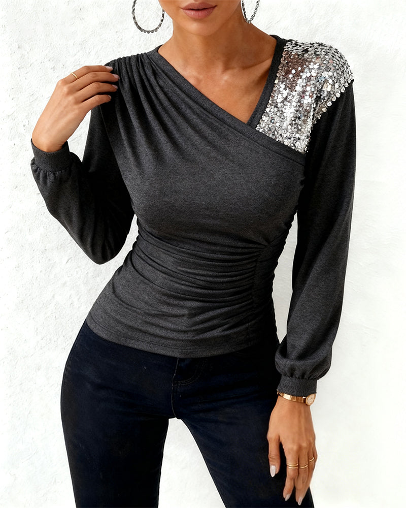 Översta Hästsko Ärm V-Ringning Kontrastfärg