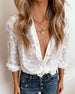 SPECIFIKATIONER Topptyp: Blusar Stil: Elegant Material: 100% Polyester Tillfälle: Dagligen, Semester Urringning: V-hals_V Mönstertyp: Enfärgade Typ av ärm: Flare ärm Ärmlängd: Långärmad Passform typ: Vanlig Säsong: Höst, Vinter Detaljer: Rufsad Paketet innehåller: 1 x Blus STORLEKSTABELL(cm) Storlek EU Byst Längd Armlängd Axlar...