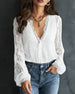 SPECIFIKATIONER Topptyp: Blusar Stil: Elegant Material: Bomullsblandningar Tillfälle: Dagligen Urringning: V-hals_V Mönstertyp: Enfärgade Typ av ärm: Lykthylsa Ärmlängd: Långärmad Passform typ: Vanlig Säsong: Höst,Vinter Detaljer: Spets Paketet innehåller: 1 x Blus STORLEKSTABELL(cm) Storlek Byst Längd S 97 65 M 101 66.5 L 105 68 XL ...