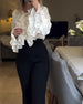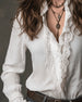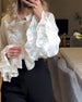 SPECIFIKATIONER Topptyp: Blusar Stil: Chic Material: Bomullsblandningar Tillfälle: Dagligen Urringning: Skjortkrage Mönstertyp: Enfärgade Typ av ärm: Volangärm Ärmlängd: Långärmad Passform typ: Vanlig Säsong: Vår,Höst,Vinter Detaljer: Rufsad Paketet innehåller: 1 x Blus STORLEKSTABELL(cm) Storlek Byst Längd S 97 65 M 101 66.5 L 105 68 ...