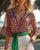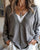 Blus V-Ringning Lapptäcks Lös Långärmad