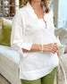 SPECIFIKATIONER Topptyp: Blusar Stil: Enkel Material: Bomullsblandningar Tillfälle: Dagligen Urringning: V-hals_V Mönstertyp: Enfärgade Typ av ärm: Vanlig ärm Ärmlängd: 3/4 ärm Passform typ: Vanlig Säsong: Vår,Höst Detaljer: Rufsad Paketet innehåller: 1 x Blus STORLEKSTABELL(cm) Storlek Byst Längd S 97 68 M 101 69.5 L 105 71 XL 111 7...