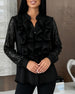Topp Plysch V-Ringning Sömlagd Långärmad