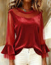 SPECIFIKATIONER Topptyp: Blusar Stil: Enkel Material: Bomullsblandningar Tillfälle: Dagligen Mönstertyp: Enfärgade Typ av ärm: Volangärm Ärmlängd: Långärmad Passform typ: Vanlig Säsong: Höst,Vinter Detaljer: Bågknut Paketet innehåller: 1 x Blus STORLEKSTABELL(cm) Storlek Byst Längd S 97 65 M 101 66.5 L 105 68 XL 111 69.5 2XL 117 71...