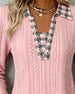 Långärmad Topp Med Rutigt Mönster Och Färgblockning