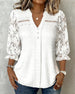 SPECIFIKATIONER Topptyp: Blusar Stil: Chic Material: Bomullsblandningar Tillfälle: Dagligen Urringning: V-hals_V Mönstertyp: Enfärgade Typ av ärm: Flare ärm Ärmlängd: 3/4 ärm Passform typ: Vanlig Säsong: Höst,Vinter Detaljer: Urgröpande,Spets Paketet innehåller: 1 x Blus STORLEKSTABELL(cm) Storlek Byst Längd S 97 65 M 101 66.5 L 105 68...