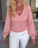 Långärmad Blus Med Ribbstruktur Och Borstad Yta