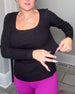 T-shirt med långärmad, avslappnad enfärgad U-ringning