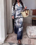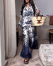 Kostym Elegant Långärmad Tryckt Vida Ben