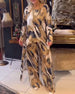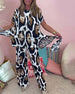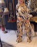 Avslappnad leopardmönstrad ficka med rund hals och breda byxor