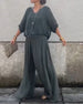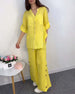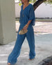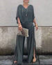 SPECIFIKATIONER Stil: Enkel Topptyp: Blusar Kategori: Set Material: Bomullsblandningar Mönstertyp: Enfärgade Urringning: V-hals Typ av ärm: Vanlig ärm Ärmlängd: 3/4 ärm Typ Byxor: Breda ben Byxlängd: Lång Midjetyp: Mellan Midja Passform typ: Vanlig Säsong: Vår, Sommar, Höst Detaljer: Ficka, Knappar Tillfälle: Dagligen Paketet innehåller: 1 x ...