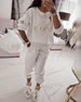SPECIFIKATIONER Stil: Enkel Topptyp: Blusar Kategori: Set Material: Bomullsblandningar Mönstertyp: Enfärgade Urringning: Rund nacke Typ av ärm: Fjärilsärm Ärmlängd: Halvärm Typ Byxor: Konventionell Byxlängd: Lång Midjetyp: Mellan Midja Passform typ: Lös Säsong: Sommar Detaljer: Blandade Tillfälle: Dagligen Paketet innehåller: 1 x Blus, 1 x Byx...