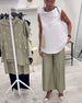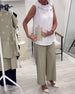 SPECIFIKATIONER Stil: Elegant Kategori: Set Material: Bomullsblandningar Mönstertyp: Enfärgade Urringning: Grimma Ärmlängd: Ärmlös Typ Byxor: Breda ben Byxlängd: Lång Midjetyp: Hög Midja Passform typ: Vanlig Säsong: Sommar Detaljer: Snöra upp, Slits Tillfälle: Dagligen Paketet innehåller: 1 x Linne, 1 x Byxor STORLEKSTABELL(cm) ...