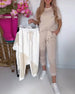 Storlekstabell Storlek Byst Toppens längd Midja Byxlängd S 70 63 58 103 M 74 64 62 104 L 78 65 66 105 FUNKTIONERSlim Fit-design – Detta set är skräddarsytt för att framhäva dina naturliga former samtidigt som det ger komfort. Den slimmade passformen skapar en elegant och stilren siluett utan att begränsa rörelserna, vilket gö...