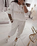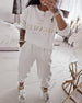 SPECIFIKATIONER Stil: Sportig Topptyp: Tröjor Kategori: Set Material: Bomullsblandningar Mönstertyp: Brev Urringning: Rund nacke Typ av ärm: Tappad axel Ärmlängd: Långärmad Typ Byxor: Träningsbyxa Byxlängd: Lång Midjetyp: Mellan Midja Passform typ: Vanlig Säsong: Vår,Höst Tillfälle: Dagligen Paketet innehåller: 1 x Tröja, 1 x Byxor STORLEKSTAB...