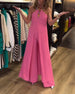Ärmlöst linne med vida benbyxor med enfärgad och ihålig färg