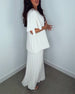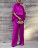 SPECIFIKATIONER Stil: Chic, Elegant Kategori: Set Material: Bomullsblandningar Mönstertyp: Enfärgade Urringning: Hög hals Typ av ärm: Fladdermushylsa Ärmlängd: Halvärm Typ Byxor: Breda ben Byxlängd: Lång Midjetyp: Hög Midja Passform typ: Vanlig Säsong: Vår, Sommar Tillfälle: Dagligen, Arbete Paketet innehåller: 1 x Blus, 1 x Byxor STORLEKS...