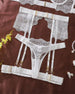 SPECIFIKATIONER Stil: Sexig Sammansättning: 90% Polyester, 10% Spandex Stöd: Medium stöd Bröstkudde: Nej Kön: Kvinna Detaljer: Korsband Mönster: Jacquard Tillämpliga personer: Vuxen Genomskinlig: Halvgenomskinlig Trosorhöjden: Midjehöjd Trosortyp: Trosor Typ: Sexiga set Bruksanvisning: Handtvätt, inte kemtvätt Tygel...