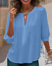 Avslappnad v-ringad enfärgad blus med knappar