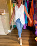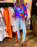 Tryckt avslappnad topp med djupt V