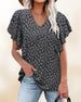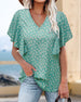 Kortärmad blus med V-ringad och blomtryck