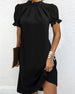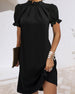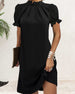 SPECIFIKATIONER Stil: Enkel Material: 95% polyester; 5% spandex Klänningstyp: A-linje Klänning längd: Knälängd Urringning: Ståkrage Mönstertyp: Enfärgade Typ av ärm: Puffärm Ärmlängd: Kortärmad Detaljer: Blandade Passform typ: Vanlig Säsong: Vår, Sommar Tillfälle: Dagligen Paketet innehåller: 1 x Klänning STORLEKSTABELL(cm) Storlek Byst ...