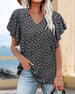 SPECIFIKATIONER Topptyp: Blusar Stil: Enkel Material: Spandex Tillfälle: Dagligen Urringning: V-hals_V Mönstertyp: Blommig, Tryckt Typ av ärm: Volangärm Ärmlängd: Kortärmad Passform typ: Lös Säsong: Vår, Sommar, Höst Paketet innehåller: 1 x Blus STORLEKSTABELL(cm) Storlek Byst Längd S 100 65 M 105 66 L 110 67 XL 115 68 2...
