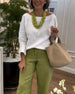 SPECIFIKATIONER Stil: Enkel Topptyp: Skjorta Kategori: Set Material: Bomullsblandningar Urringning: Ståkrage Typ av ärm: Vanlig ärm Ärmlängd: 3/4 ärm Typ Byxor: Straight Byxlängd: Lång Midjetyp: Hög Midja Passform typ: Vanlig Säsong: Vår,Sommar Detaljer: Lappverk,Ficka Tillfälle: Dagligen Paketet innehåller: 1 x Skjorta, 1 x Byxor STORLEKSTABE...