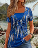T-shirt med tvådelad fusk och snörning i leopardmönster