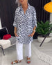 Blus med avslappnad leopardmönster och långärmad