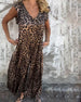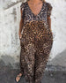 V-ringad lös klänning i leopardmönstret