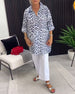 Blus Halvlångärmad Leopardtryck Löst Sittande