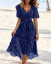 SPECIFIKATIONER Stil: Elegant Material: Chiffong,Polyester Klänningstyp: A-linje Klänning längd: Midi Urringning: V-hals Mönstertyp: Tryckt Typ av ärm: Vanlig ärm Ärmlängd: Kortärmad Detaljer: Lappverk, Snöra upp Passform typ: Vanlig Säsong: Vår, Sommar, Höst Tillfälle: Dagligen Paketet innehåller: 1 x Klänning STORLEKSTABELL(cm) ...