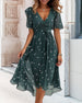 SPECIFIKATIONER Stil: Elegant Material: 3% Spandex,97% Polyester Klänningstyp: A-linje Klänning längd: Midi Urringning: V-hals_V Mönstertyp: Blommig, Tryckt Typ av ärm: Puffärm Ärmlängd: Kortärmad Detaljer: Knappar, Slits Passform typ: Vanlig Säsong: Vår, Sommar, Höst Tillfälle: Dagligen Paketet innehåller: 1 x Klänning STORLEKSTABELL(cm) ...