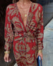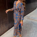 Vintage tryckt V-ringad långärmad elegant klänning