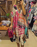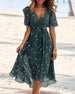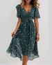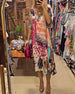 FUNKTIONER Elegant V-ringad design: Den eleganta V-ringade designen framhäver perfekt den charmiga halslinjen och lägger till en touch av elegans och charm till den övergripande looken. Utsökta tryck: De unika och utsökta trycken är som konstverk som pryder kjolen, vilket gör dig till fokus vart du än går och visar din modesmak. Eleganta knu...