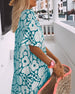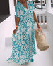 V-ringad lång klänning i tryck med halvärm