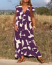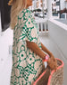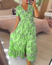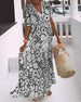 V-ringad lång klänning i tryck med kort ärm