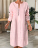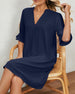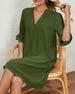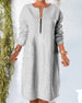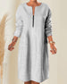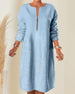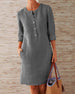 SPECIFIKATIONER Stil: Casual Material: Bomull och linne Sammanhang: Vardag Urringning: Rund nacke Mönstertyp: Enfärgad Typ av ärm: Lykthylsa Ärmlängd: 3/4 ärm Klänning längd: Midi Passform: Lös Säsong: Vår, Sommar, Höst Detaljer: Blandade Förpackningen innehåller: 1 x Klänning STORLEKSTABELL(cm) Storlek Byst Axlar Längd S 96 54 1...