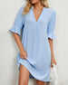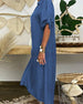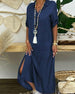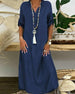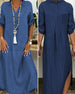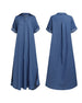 SPECIFIKATIONER Klänningstyp: Denim Klänning längd: Maxi Stil: Vardag Material: Denim, Polyester Sammanhang: Vardag Urringning: Slag Mönstertyp: Enfärgad Typ av ärm: Vanlig ärm Ärmlängd: Halvärm Passform: Lös Säsong: Vår, Sommar, Höst Förpackningen innehåller: 1 x Klänning STORLEKSTABELL(cm) Storlek Byst Armlängd Midjeomkret...