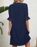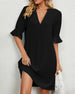 SPECIFIKATIONER Stil: Enkel, Elegant, Kontor Klänningstyp: Skiftklänning Klänning längd: Knälängd Urringning: V-hals_V Mönstertyp: Enfärgade Typ av ärm: Volangärm Ärmlängd: Halvärm Detaljer: Blandade Passform typ: Vanlig Säsong: Vår, Sommar, Höst Tillfälle: Dagligen, Arbete Material: Polyester Paketet innehåller: 1 x Klänning STORLEKSTABELL...