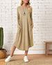 SPECIFIKATIONER Stil: Casual Material: Bomull Klänningstyp: A-linje Klänning längd: Midi Urringning: Rund nacke Mönstertyp: Enfärgade Typ av ärm: Vanlig ärm Ärmlängd: Långärmad Detaljer: Ficka Passform typ: Lös Säsong: Vår, Höst, Vinter Tillfälle: Dagligen Förpackningen innehåller: 1 x Klänning STORLEKSTABELL(cm) Storlek Byst ...
