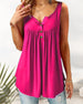 Bekväm ärmlös linne med knappar för kvinnor Egenskaper Komfortabel - ger en modern avslappnad känsla under varma dagar. Stil - V-ringad design, snygg och avslappnad stil. Det finns tre knappar på linnet. Färger - Sju färger går det att välja mellan. Specifikationer Storlek: S,M,L,XL,XXL,3XL,4XL,5XL,6XL Material: Polyester Arm Längd: Ärmlös...